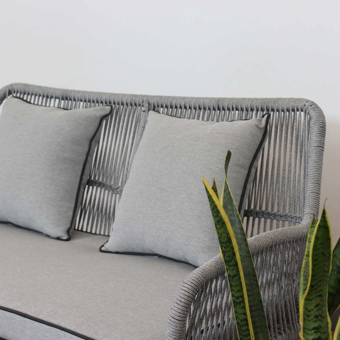 Für das Gestell und die Tischplatte kommt Akazienholz zum Einsatz. Damit das Loungeset optisch ansprechend ist, sind der Korpus und der Bezug im Farbton Hellgrau gehalten. Optisch begeistert das Gestell in der Farbe Natur. Das Gestell ist mit Rope umflochten und bringt somit modernes Flair auf Ihre Terrasse. Der Bezug des Loungesets ist aus Polyester gefertigt. Für eine längere Haltbarkeit empfehlen wir bei stärkerem oder lang anhaltendem Regen, die abnehmbaren Kissen im Innenraum zu lagern. Farblich überzeugt die Tischplatte in Akazie geölt.