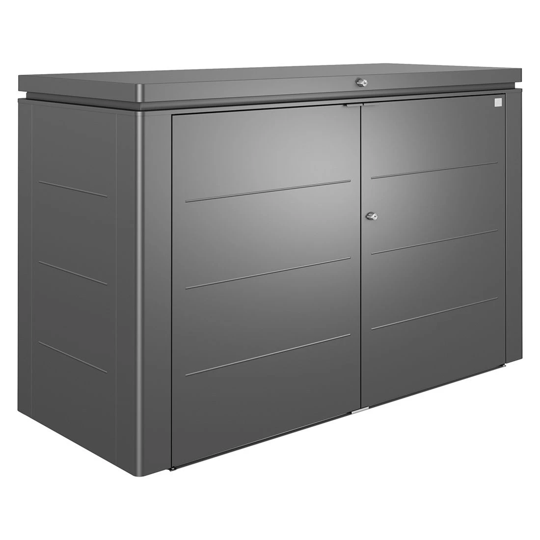 Das Biohort Highboard 200 in Dunkelgrau-Metallic ist ein hilfreiches und vielseitiges Möbelstück für Ihren Garten und die Terrasse, wenn es um die Aufbewahrung Ihrer Utensilien geht. Egal ob Sitzpolster, Gartengeräte oder Grillutensilien, alles ist regenwasserdicht untergebracht.