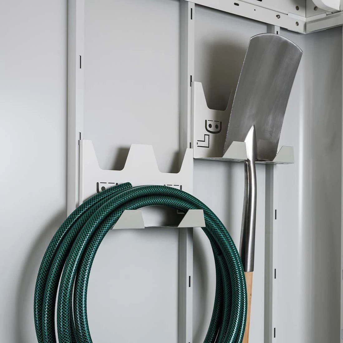 Die Biohort Neo Gerätehalter dienen Ihnen zur Aufbewahrung von Spaten, Rechen, Schläuchen, Werkzeugen und vielen anderen Dingen. Sie bestehen aus feuerverzinktem Stahlblech für eine lange Lebensdauer.