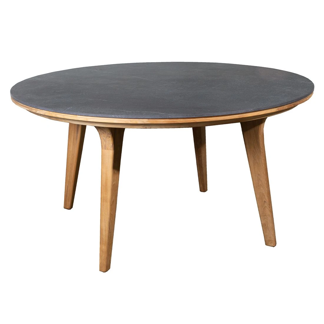 Um das Gestell herzustellen, wird hochwertiges Teakholz verarbeitet. Farblich ist das Gestell in Natur gehalten. Für die Tischplatte wird das Naturmaterial Keramik verwendet. Keramikplatten sind stoß-, schlag- und schnittbeständig und zählen somit zu den stabilsten Tischplatten auf dem Gartentisch-Markt. Farblich ist die Tischplatte in einem schönen Fossil Black gehalten. Das klassische Vierfuß-Gestell garantiert Ihnen maximale Beinfreiheit. Das Design des Gartentisches ist klassisch rund.