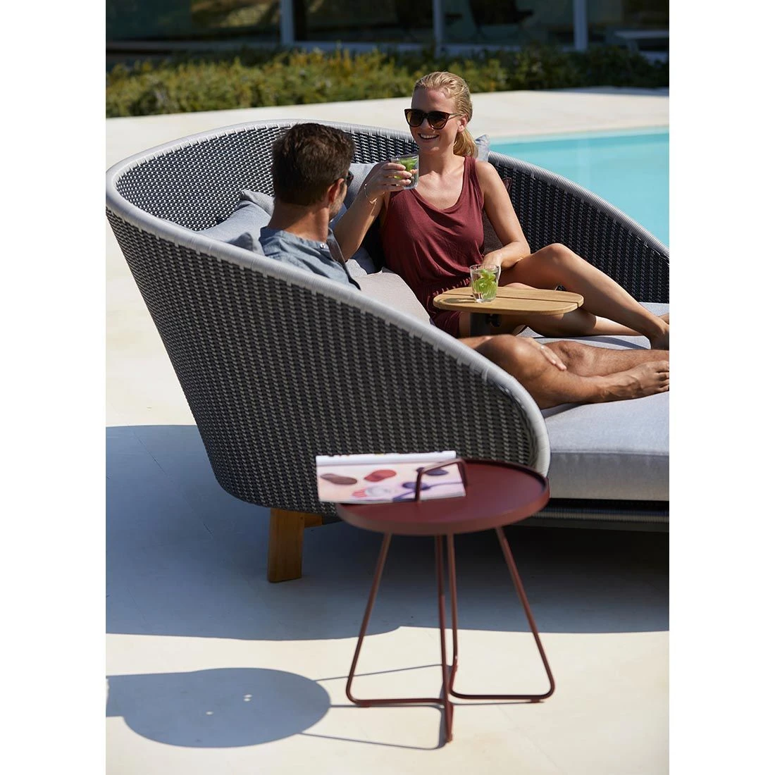 Der Beistelltisch On-the-move von Cane-Line ist ein attraktiver Zusatztisch, der als kleine Ablagefläche ausreichend Platz für Getränke und Utensilien zur Verfügung stellt.