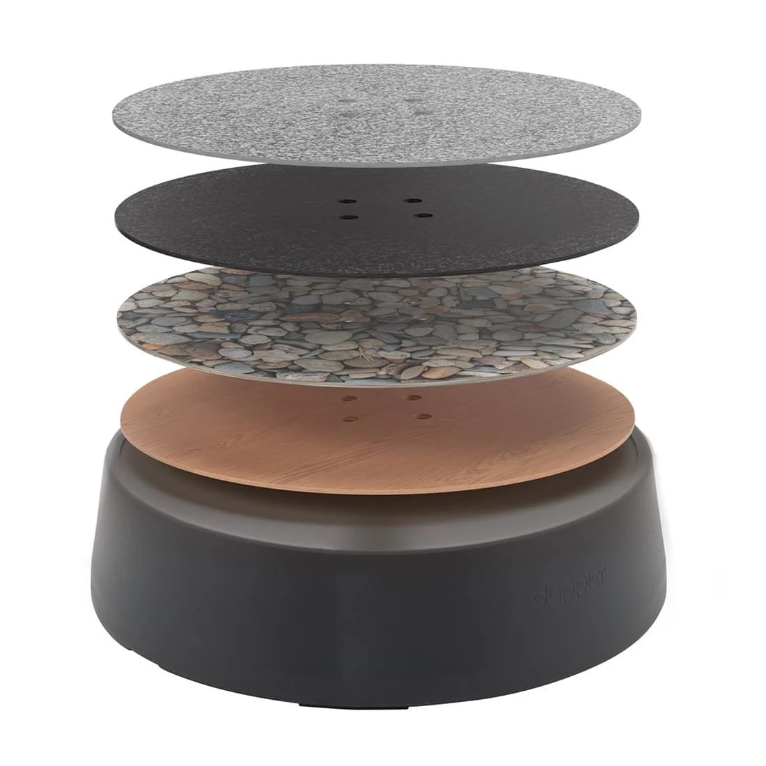 Die Dekorplatte (ca. 5kg) für den Rollsockel Expert Easy-Move wird zwischen Ständer und Standrohr gelegt/montiert. Es stehen 4 Dessins zur Auswahl.