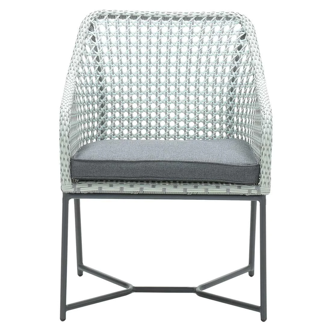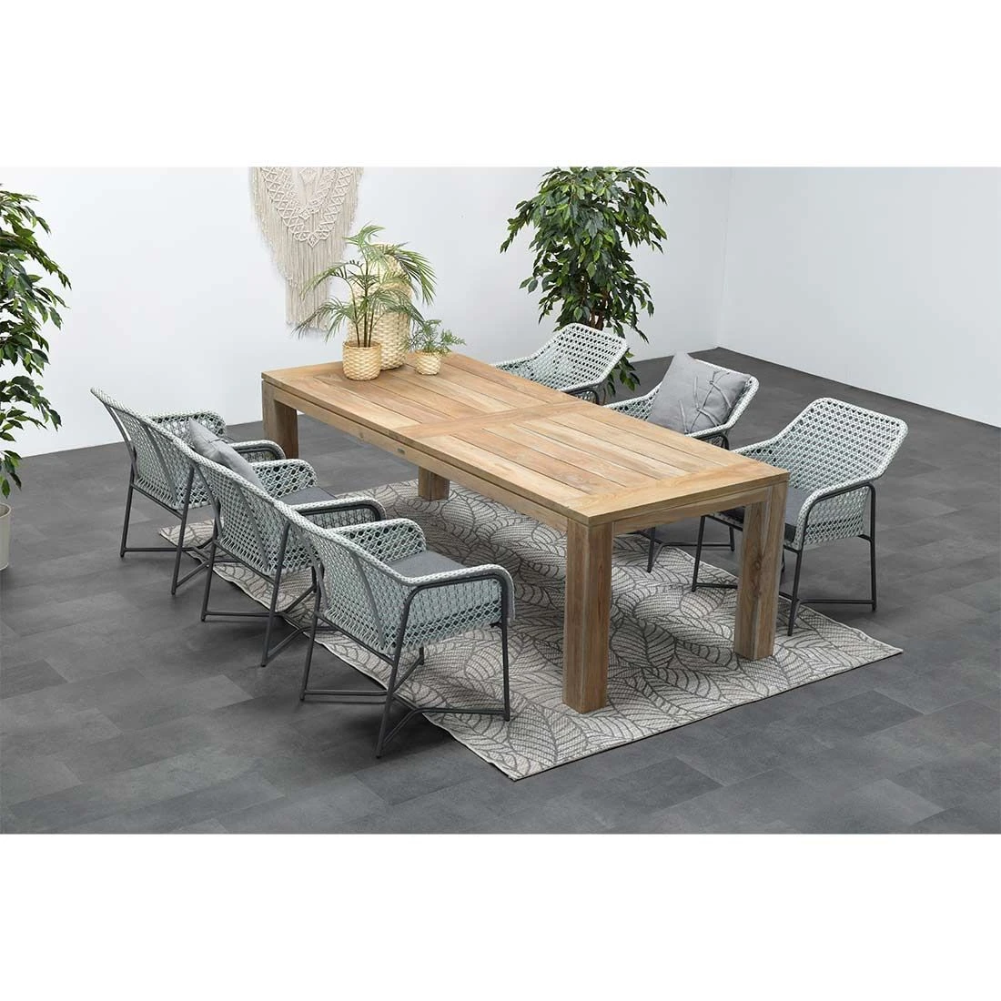 Das Gestell wird aus Aluminium gefertigt. Das geringe Eigengewicht des Materials macht den Gartensessel zu einem robusten, aber dennoch leicht zu transportierenden Sitzmöbel auf Ihrer Terrasse. Für eine attraktive Optik ist das Gestell im Farbton Carbon Black gehalten. Die Sitzfläche besteht aus modernem Rope-Geflecht. Die Farbgestaltung der Sitzfläche in Hellgrau ist äußerst ansprechend. Als hochwertiges Material für den Bezug kommt ein Polyester-Stoff zum Einsatz. Er ist sehr strapazierfähig und bietet somit die idealen Voraussetzungen für den Einsatz im Freien.