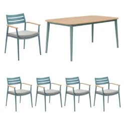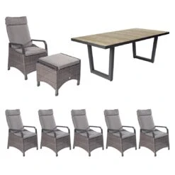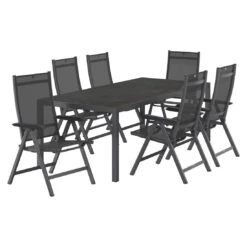 Stern Evoee Stapelsessel-Gartenmöbelset 7-teilig Mit Silverstar-Tisch 200x100cm Silbergrau/Anthrazit