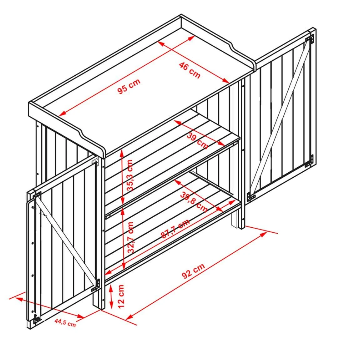 Zudem bietet dieser Tisch mit seinem Unterschrank inklusive Regalbrett viel Stauraum, so dass Sie alles schnell zur Hand haben. Die Arbeitsfläche wurde aus beschichtetem Stahl gefertigt und ist somit robust und pflegeleicht. Und wenn Sie sich nach der Gartenarbeit mit einem gemütlichen Grillabend belohnen möchten, lässt sich der Tisch auch zu einem Grilltisch umfunktionieren.