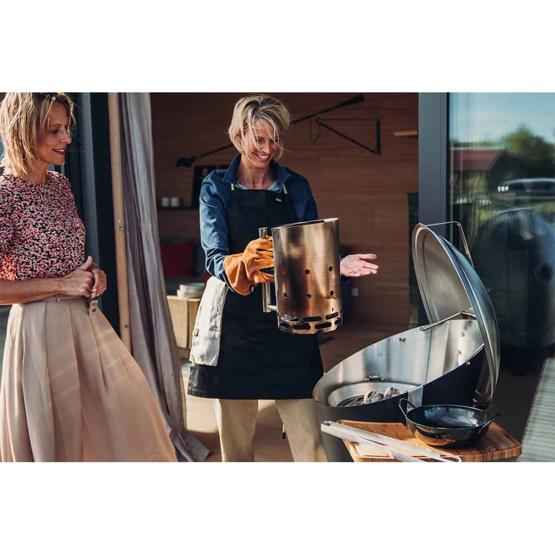Der höfats BBQ Starter kann sowohl wie ein klassischer Anzündkamin verwendet werden, als auch nach dem höfats Anzündprinzip. Beim höfats Anzündprinzip muss der Anzündkamin nicht umgedreht, sondern lediglich nach oben abgezogen werden. Es entsteht keinerlei Funken- und Ascheflug. Dadurch ist das höfats Anzündsystem im Vergleich zu herkömmlichen Anzündkaminen weitaus sicherer und komfortabler.