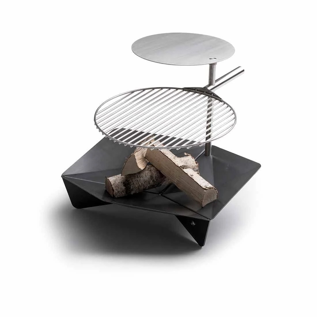 TRIPLE GRILLROSTDer adaptierbare Grillrost ist stufenlos höhenverstell- und schwenkbar. Eine senkrechte Stange bildet die Führung, entlang dieser kann der Grillrost um 45 cm vertikal verstellt werden. Er hält sich dabei in jeglicher Höhe durch verkannten selbst.