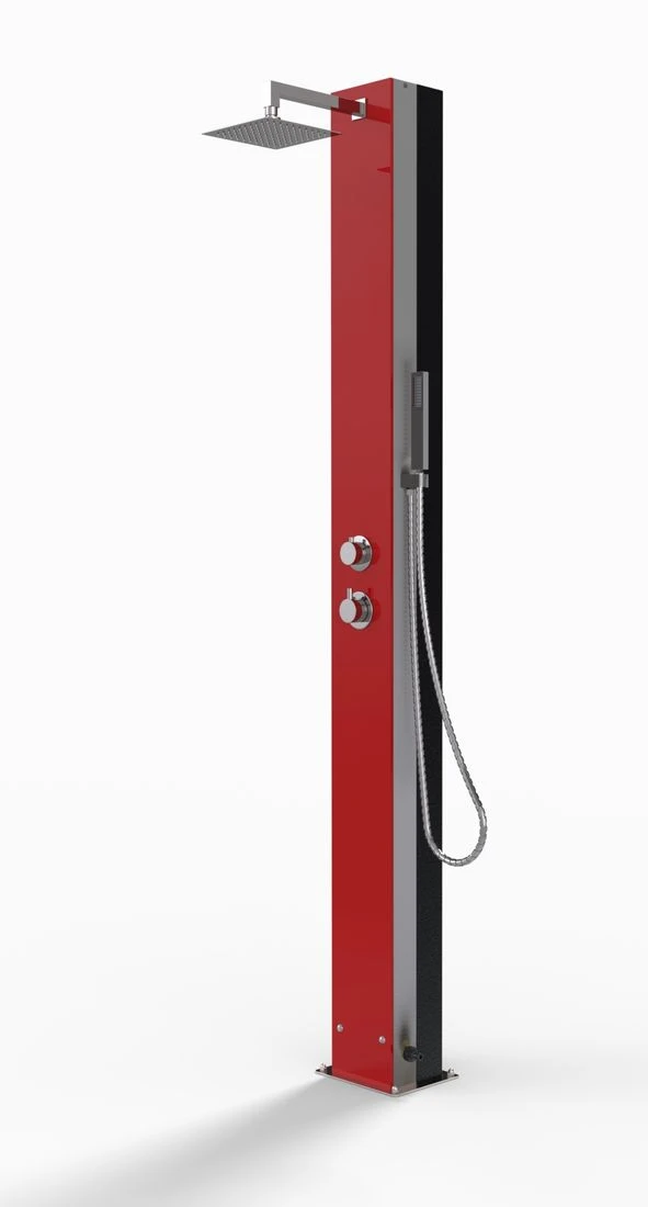 Saba Solar – sie ist nur aus den edelsten Materialien gefertigt. Kühles Edelstahl V2A, 8 mm starkes Sicherheitsglas und ein Wassertank aus Aluminium. Dieser fasst ca. 25 Liter und ist zur schnelleren Erwärmung durch die Sonneneinstrahlung außen schwarz lackiert. Selbstverständlich lässt sich die Temperatur mit dem Einhebelmischer individuell regeln und die Handbrause getrennt ansteuern. Der Wasseranschluss erfolgt über ein handelsübliches Gartenschlauchsystem. Jetzt kann der Sommer kommen!