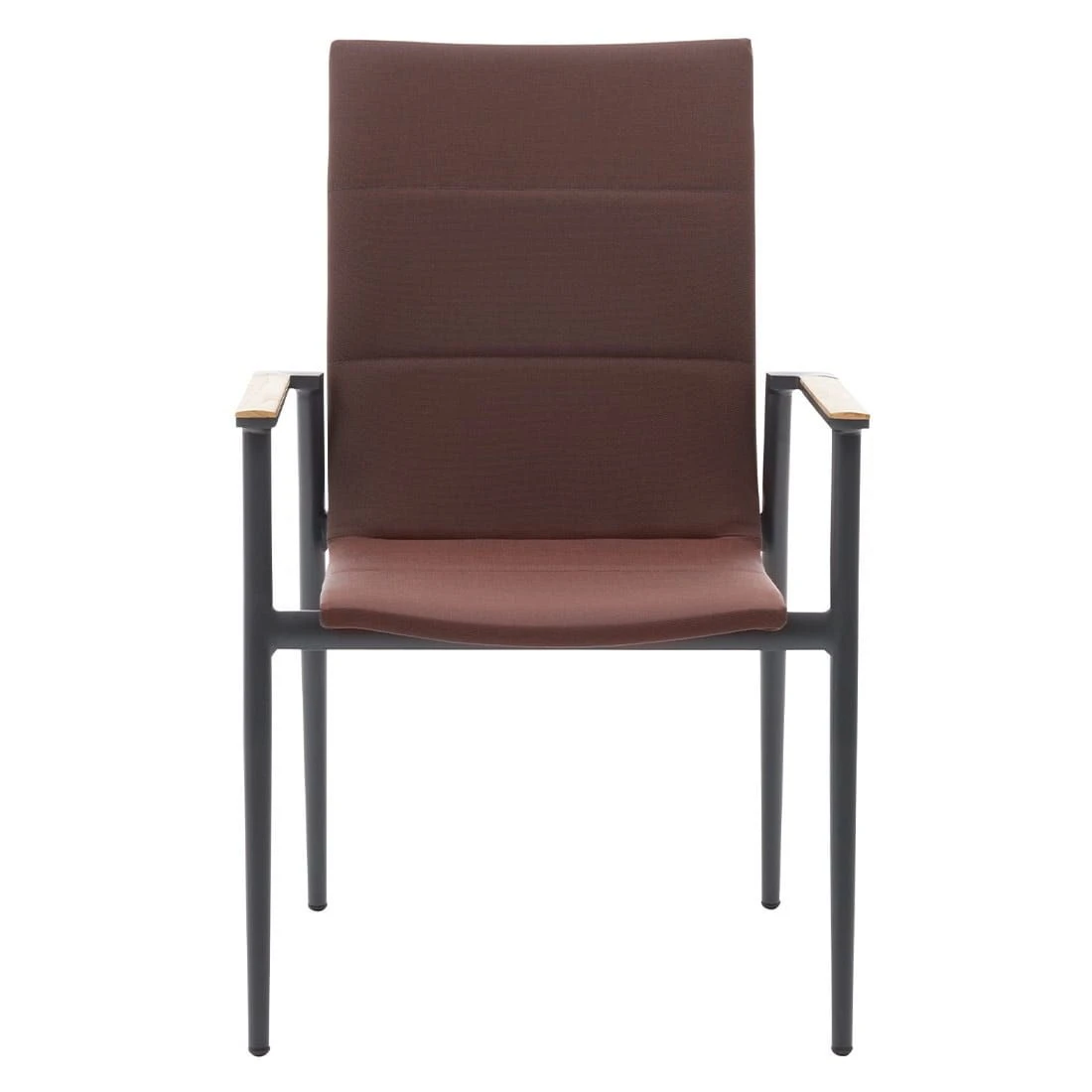 Für die Bespannung der Sitzfläche verlässt sich der Hersteller auf hochwertiges Textilene. Es zeichnet sich durch eine hohe Robustheit gegenüber Hitze und Frost aus und ist leicht zu reinigen. Auch eine stärkere Belastung macht dem robusten Sitzmöbel nichts aus, denn es ist bis 140 kg belastbar. Die Sitzbreite von 45 cm und die Sitztiefe von 43 cm machen den Stapelsessel besonders komfortabel. Die Sitzhöhe liegt zudem bei angenehmen 45 cm.