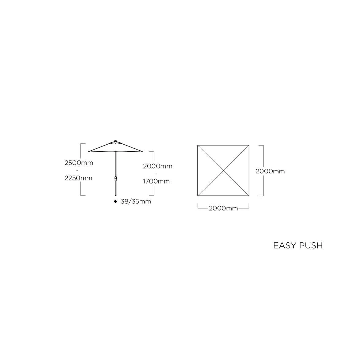 Kettler Easy Push Stockschirm 200x200cm Aluminium/Polyester Anthrazit/Hellgrau Meliert