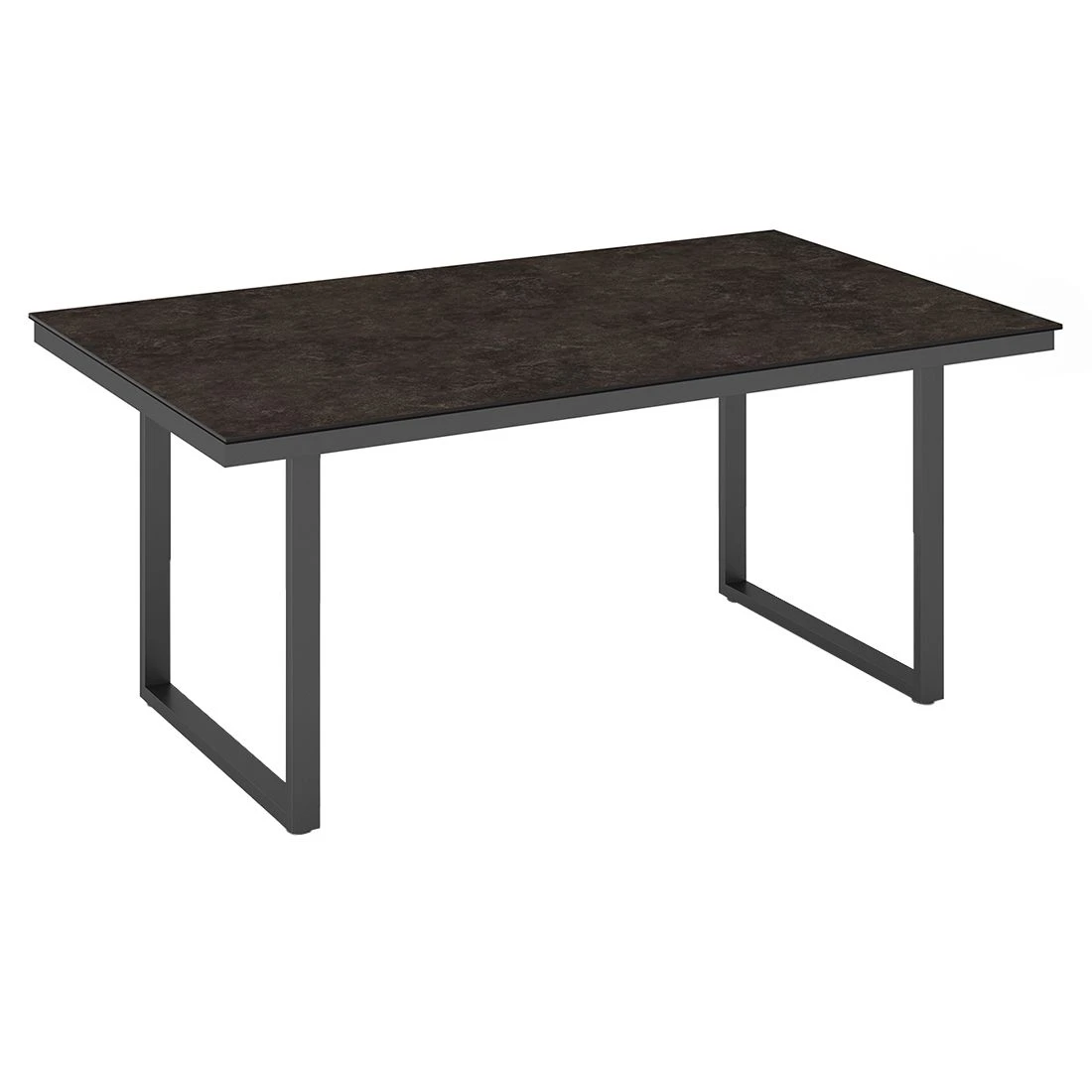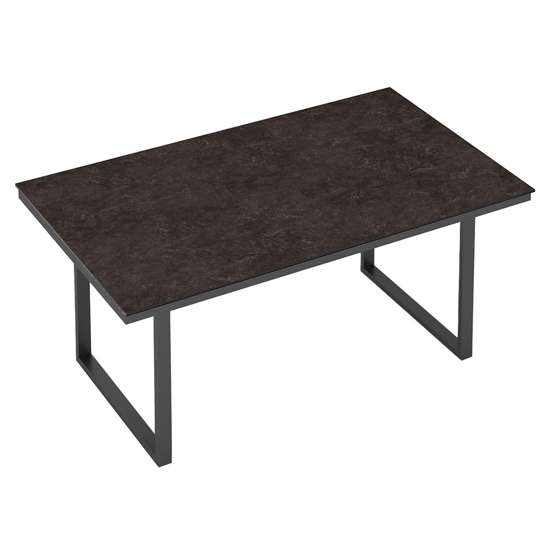 Mit seinem Gestell-Material Aluminium zählt der Gartentisch Skate zu den modernen Tischmodellen, die sich auf der Terrasse ohne Aufwand aufstellen und bewegen lassen. Das Gestell besticht mit seinen attraktiven Kufen. Für die Tischplatte wird hochwertiges Keramik-Glas verarbeitet, das auf der Terrasse und im Garteneine angenehme Wohlfühl-Atmosphäre schafft. Farblich ist die Platte in Anthrazit gehalten. Mit der rechteckigen Form lässt sich der Gartentisch platzsparend in Ecken oder an Häuserwänden aufstellen.