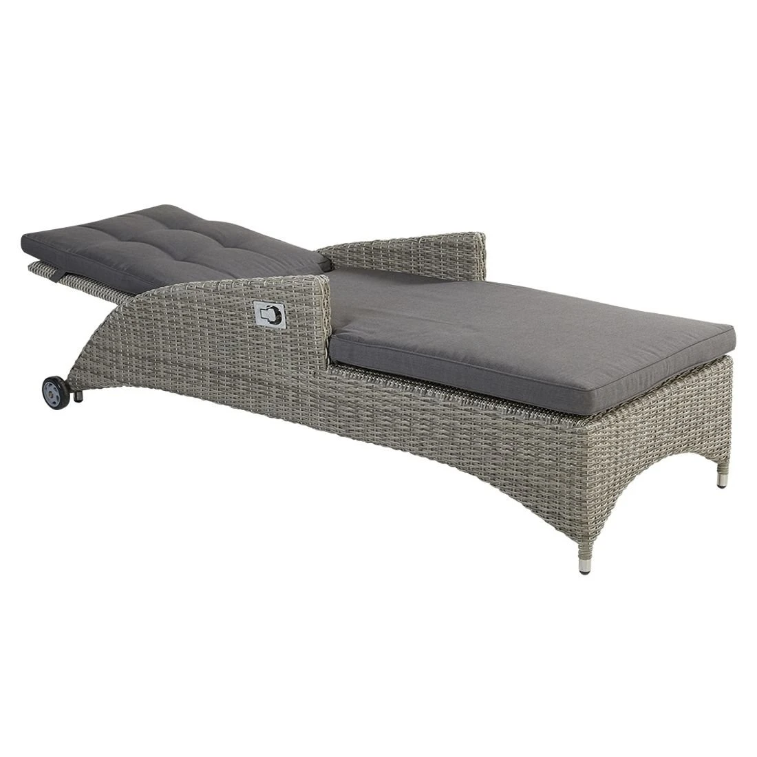 Das Gestell besteht aus pflegeleichtem und wetterfestem Aluminium. Als hochwertiges Material für den Bezug kommt ein Polyester-Stoff zum Einsatz. Er ist sehr strapazierfähig und bietet somit die idealen Voraussetzungen für den Einsatz im Freien. Den finalen Schliff erhält diese Gartenliege durch den Bezug in Dunkelgrau. Der Korpus und die Sitzfläche sind aus Polyrattan-Geflecht gefertigt. Damit die Gartenliege optisch ansprechend ist, sind der Korpus und die Sitzfläche im Farbton Grau gehalten.