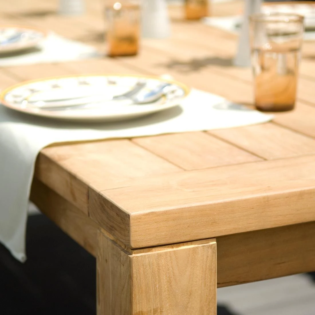 Für das Gestell wird ein äußerst nachhaltiges Material verwendet: recyceltes Teak. Hierbei wird gebrauchtes Teak aus alten Häusern oder Schiffen gewonnen und zur Fertigung von Gartenmöbeln wiederverwendet. Gebrauchsspuren wie Kerben oder Löcher bleiben dabei bewusst erhalten und gehören zum einzigartigen Design mit individueller Geschichte. Als klassische Design-Komponente fungiert das geradlinige Vierfußgestell. Die Tischplatte wird aus recyceltem, also wiederverwertetem, Teak gefertigt. Hier werden bewusst alte Gebrauchsspuren wie Kerben und Nagellöcher erhalten, sodass jeder Tisch eine einzigartige Geschichte erzählt und ein echtes Unikat ist. Farblich ist die Tischplatte in einem schönen Teak Recycelt gehalten. Die Form des Gartentisches ist klassisch rechteckig gestaltet.