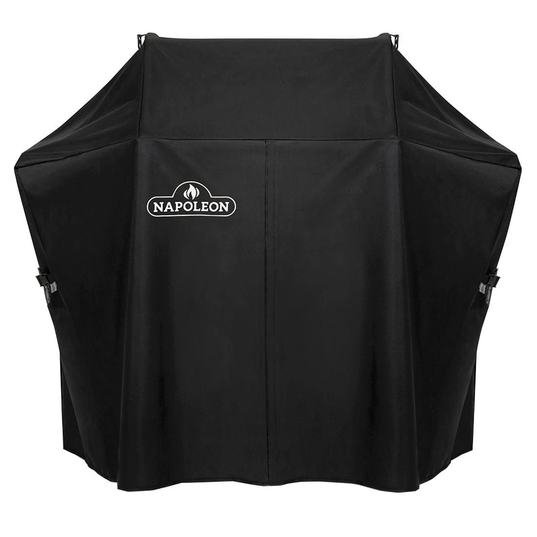 Napoleon® Haube mit langlebigem, wasserabweisenden Gewebe. Bricht nicht und bietet das ganze Jahr hindurch Vollwetterschutz. Ausbleichen wird durch einen speziellen UV-Schutz vermieden. Verstellbare Riemen mit Schnallen an den Seiten für eine genaue Passform. Vermeidung von Schimmel und Aufblasen durch Belüftungsöffnungen. Passend für den Napoleon® Rogue SE 425 (Seitentische hochgeklappt).