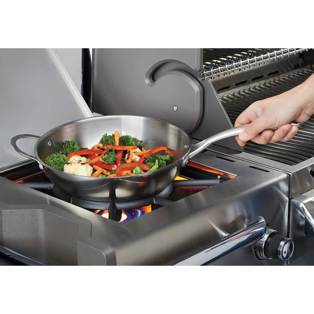 Napoleon® Edelstahl-Wok mit ca. 30,5 cm Durchmesser und langem Griff. Passt perfekt auf den Power-Seitenbrenner des Grillmodells PRO™ 825. Dank flachem Boden auch für Herde sowie Induktionsgeräte geeignet.