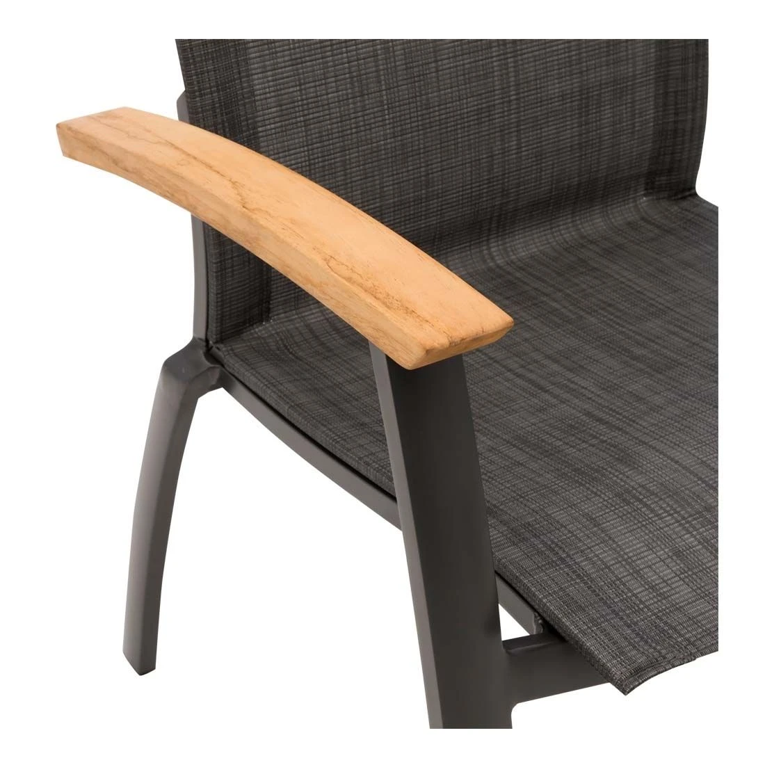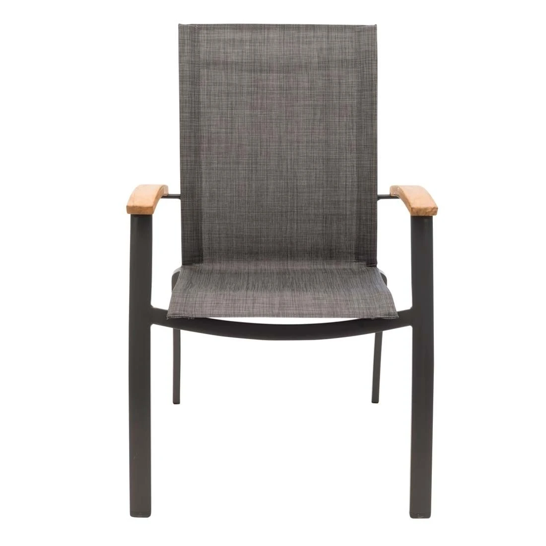 Das Gestell wird aus Aluminium gefertigt. Das geringe Eigengewicht des Materials macht den Stapelsessel zu einem robusten, aber dennoch leicht zu transportierenden Sitzmöbel auf Ihrer Terrasse. Für eine attraktive Optik ist das Gestell im Farbton Anthrazit gehalten. Ein weiterer Pluspunkt des Stapelsessels ist die Bespannung mit Textilene in der Farbe Grau. Dieser Bezugsstoff überzeugt durch eine hohe Robustheit gegenüber Hitze und Frost und ist leicht zu reinigen. Die Sitzfläche ist in ansprechendem Grau gehalten.