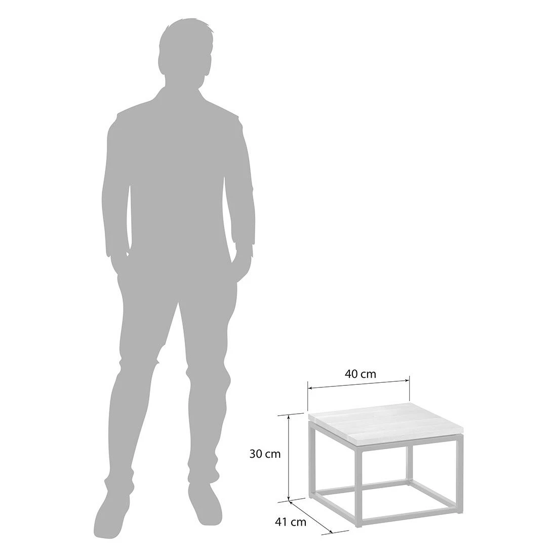 Als stabiler Unterbau für die Tischplatte dient ein Gestell aus hochwertigem Stahl. Die Tischplatte ist aus Wildeiche gefertigt und dadurch für den Einsatz auf der Terrasse, im Garten und auf dem Balkon geeignet. Farblich ist die Tischplatte in einem schönen Natur gehalten. Der Beistelltisch ist in seinem Design klassisch quadratisch gehalten.