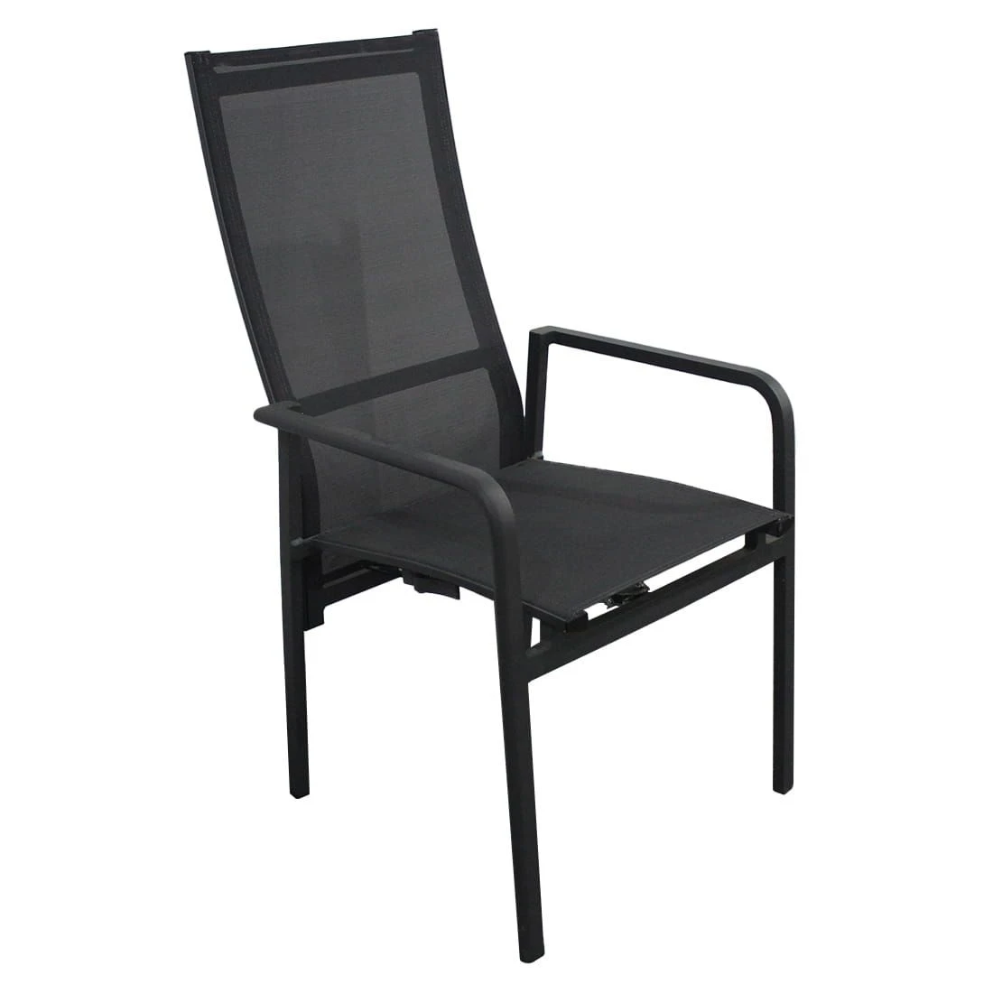 Das Gestell besteht aus pflegeleichtem und wetterfestem Aluminium. Ein weiteres Highlight des Gartensessels ist die Bespannung mit Textilene. Dieser Bezugsstoff überzeugt durch eine hohe Robustheit gegenüber Hitze und Frost und ist leicht zu reinigen. Für ein perfekt stimmiges Gesamtbild sorgt die einheitliche Farbgebung in stilvollem Anthrazit.