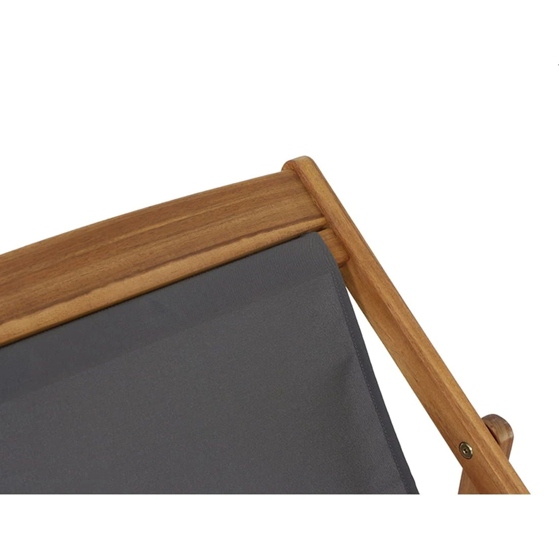 Das Gestell wird aus Akazienholz gefertigt. Die hohe Dichte und die gute Wetterfestigkeit des Materials machen das Gestell besonders robust. Farblich ist dieses in Akazie gehalten. Die Sitzfläche des Liegestuhls wird mit Polyester bespannt. Die Farbgestaltung der Sitzfläche in Grau ist überaus ansprechend.