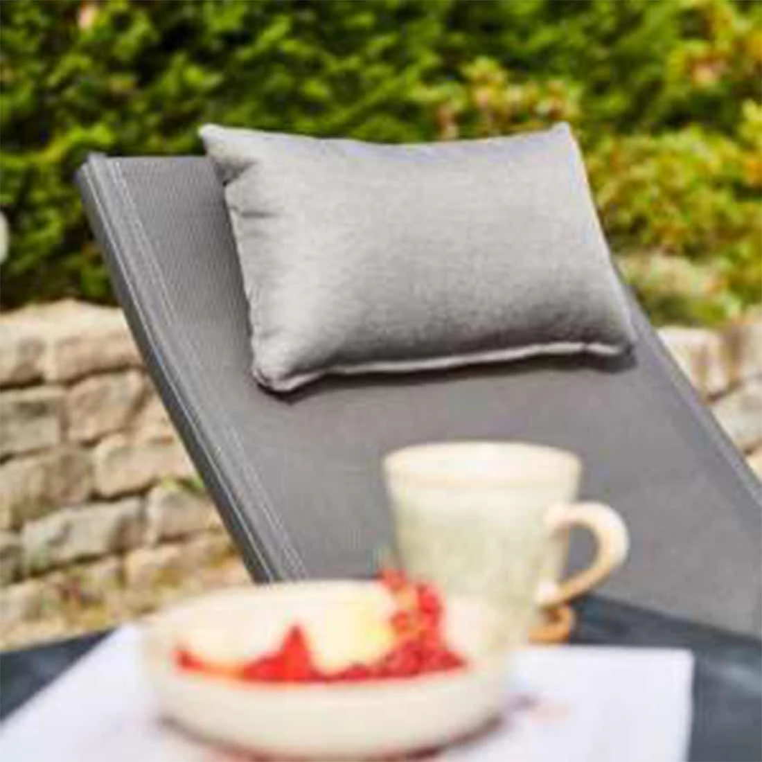 Das Gestell wurde aus Aluminium in der Farbe Matt Anthrazit gefertigt. Das geringe Eigengewicht des Materials macht die Gartenliege zu einem robusten, aber dennoch leicht zu transportierenden Sitzmöbel auf Ihrer Terrasse. Die Sitzfläche der Gartenliege wurde mit Ranotex®-Gewebe bespannt. Für die Bespannung der Sitzfläche wird hochwertiges Ranotex®-Gewebe in der Farbe Grau verwendet. Es besteht aus PVC-ummantelten Polyesterfasern und zeichnet sich durch eine hohe UV-Beständigkeit und Luftdurchlässigkeit aus. Dadurch trocknet das Material sehr zügig. Nur wenig Platz, um die Gartenliege im Winter einzulagern? Kein Problem, denn diese Liege ist klappbar und somit kompakt zu verstauen. Mit einer Belastbarkeit von 110 kg zählt die Gartenliege zu den normal belastbaren Liegemöbeln.