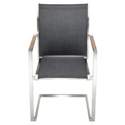 Das Gestell ist aus Aluminium gefertigt. Dadurch lassen sich die Möbel leicht von einem Standort zum nächsten transportieren und sind dennoch sehr stabil. Optisch ansprechend ist die Farbgebung der Gestelle in Anthrazit. Die Farbgebung der Sitzfläche ist Silber-Schwarz. Im Setangebot enthalten ist auch ein passender Tisch. Die Platte wird aus recyceltem, also wiederverwertetem, Teak gefertigt. Hier werden bewusst Altersspuren wie Kerben oder Nagellöcher erhalten, so dass jeder Gartentisch ein wahres Unikat ist. Passend zum Gesamtbild des Gartenmöbel-Sets begeistert die Tischplatte mit ihrer Farbgebung in Natur. Als klassische Design-Komponente fungiert das geradlinige Vierfußgestell. Die rechteckige Form ermöglicht es Ihnen, den Tisch in Ecken und an Häuserwänden platzsparend einzusetzen.