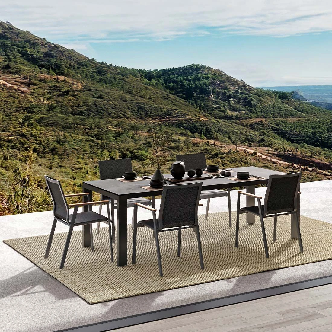 Für die Herstellung des Gestells wird hochwertiges und wetterfestes Aluminium verwendet. Für eine attraktive Optik ist das Gestell im Farbton Anthrazit gehalten. Ein weiteres Highlight des Stapelsessels ist die Bespannung mit Textilene. Dieser Bezugsstoff überzeugt durch eine hohe Robustheit gegenüber Hitze und Frost und ist leicht zu reinigen. Die Sitzfläche hat eine attraktive Farbgebung in Coal.