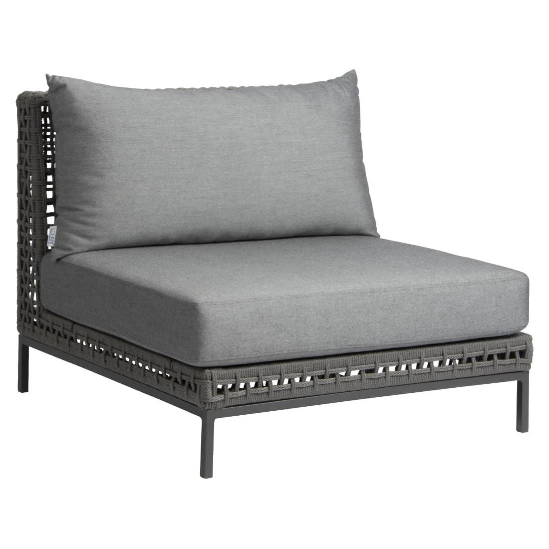 Das Gestell wird aus Aluminium in der Farbe Anthrazit gefertigt. Das geringe Eigengewicht des Materials macht das Mittelmodul zu einem robusten, aber dennoch leicht zu transportierenden Möbel auf Ihrer Terrasse. Das Gestell ist mit Rope umflochten und bringt somit ein gemütliches Flair auf Ihre Terrasse.
