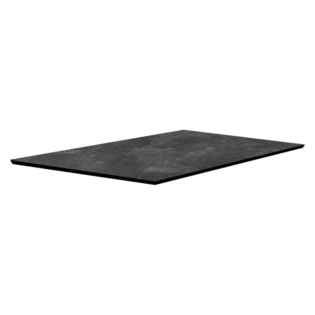 Bei der Tischplatte handelt es sich um eine sogenannte Silverstar-Platte. Dieses Material wird aus bis zu 50 Lagen Papierlaminatschichten gefertigt, die unter großer Hitze und hohem Druck verpresst werden. Diese Technik verleiht der Tischplatte ganz besondere Eigenschaften, denn sie ist kratzfest, kälte- (-20 °C) und hitzebeständig (180 °C), UV-beständig, pflegeleicht und abriebfest. Unabhängig von der Vielzahl an Dekoren ist der Kern immer schwarz, was man an der Kante der Platte erkennen kann. Farblich ist die Platte in Slate gehalten.