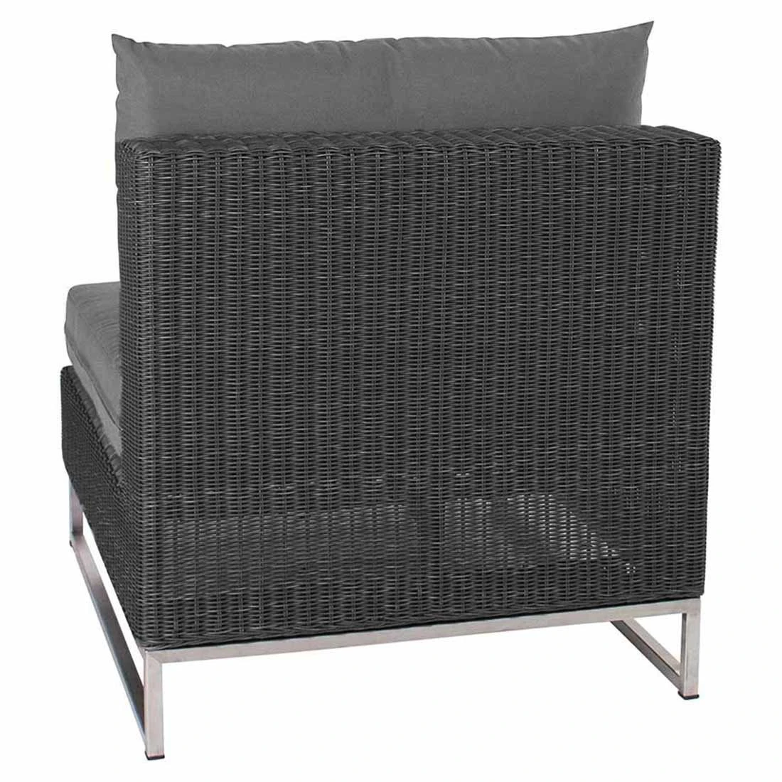 Das Gestell des Mittelmoduls besteht aus pflegeleichtem und rostfreien Edelstahl. Das Gestell, das mit hochwertigem Polyrattan umflochten ist, bringt ein exklusives Ambiente auf Ihre Terrasse. Dieses Material zeichnet sich durch eine hohe Wetterbeständigkeit aus. Die Sitzfläche, die mit hochwertigem Polyrattan umflochten ist, bringt ein exklusives Flair auf Ihre Terrasse. Dieses Material zeichnet sich durch eine hohe Wetterbeständigkeit aus.