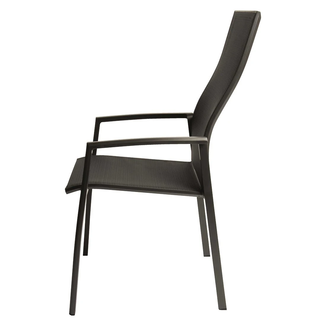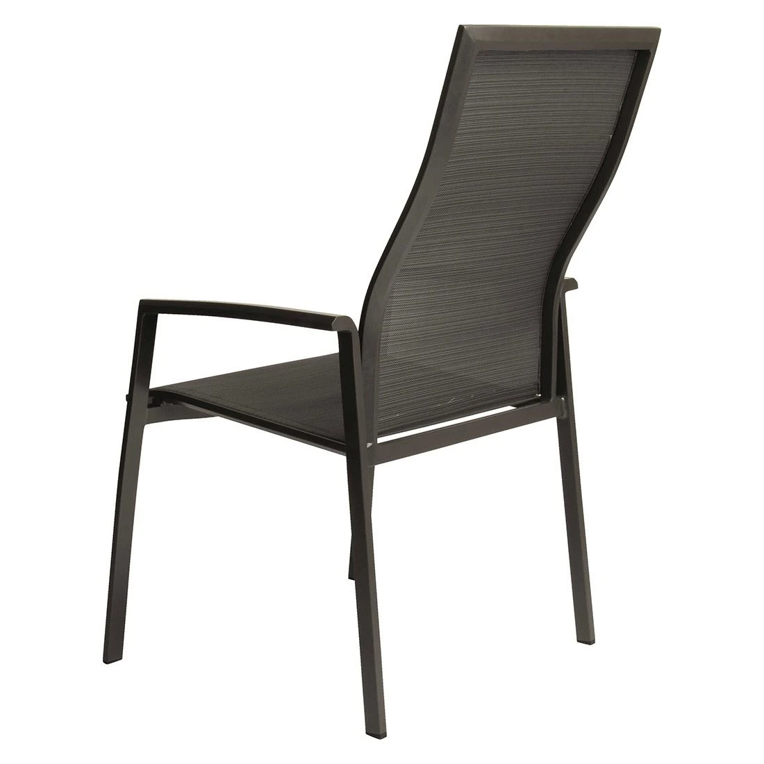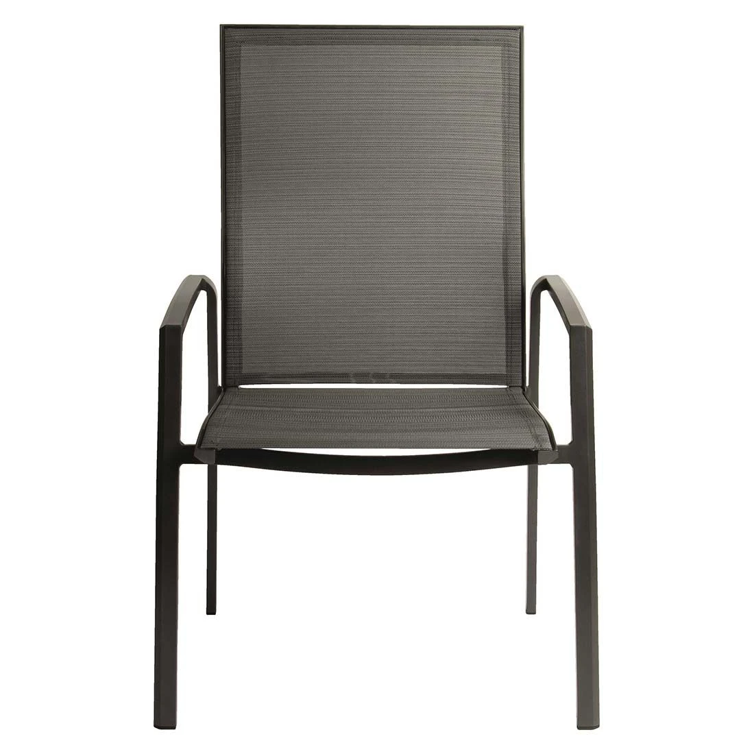 Das Gestell besteht aus pflegeleichtem und wetterfestem Aluminium. Für eine attraktive Optik ist das Gestell im Farbton Anthrazit gehalten. Für die Bespannung der Sitzfläche verlässt sich der Hersteller auf hochwertiges Textilene. Es zeichnet sich durch eine hohe Robustheit gegenüber Hitze und Frost aus und ist leicht zu reinigen. Die Sitzfläche ist in ansprechendem Karbon gehalten.