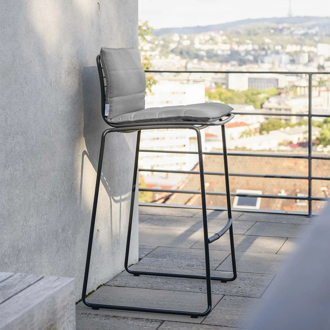 Der Garten-Barstuhl begeistert damit, dass das Gestell und die Sitzfläche aus Edelstahl gefertigt sind. Dies erzeugt nicht nur ein elegantes, sondern auch einheitliches Bild des attraktiven Möbels. Für ein perfekt stimmiges Gesamtbild sorgt die einheitliche Farbgebung in stilvollem Anthrazit.
