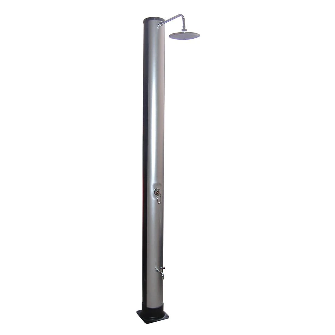Mit der Summer Fun Solardusche Silver Deluxe können Sie sich vor und nach dem Sprung ins kühle Nass erfrischen. Installieren Sie einfach die Solardusche in der Nähe des Beckens. So können Sie warmes Wasser ganz ohne Stromverbrauch genießen. Denn das Wasser wird hier einfach durch die Kraft der Sonne erwärmt.