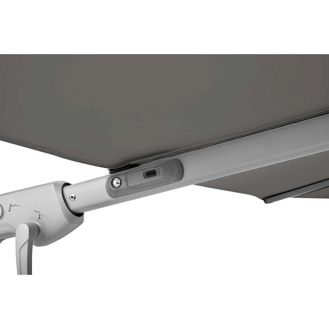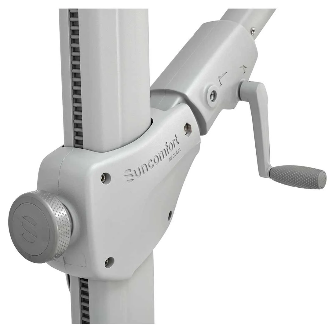 Der Varioflex (Baureihe ab 2022) ist einfach handzuhaben: Mittels einer Kurbel kann das Schirmdach nach links und rechts stufenlos geneigt werden. Durch einen Schieber, der nach unten gezogen wird, kann das Schirmdach zusätzlich in Schrägstellung gebracht werden und mit einem Drehknopf fixiert werden. Darüber hinaus verfügt dieser Freiarmschirm über einen Drehfuß, mit welchem sich die Position des Schirmdachs um 360° mühelos verändern lässt.