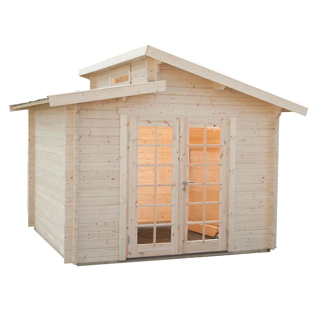 Das Wolff Finnhaus Gartenhaus Bornholm 40-B Typ 3 aus nordischer Fichte bietet Ihnen einen optisch ansprechenden Stauraum. Auf einer Grundfläche von 9,0 m2 finden Ihre Gartengeräte und Gartenmöbel ausreichend Platz. Weiterhin zeigt sich die hochwertige Verarbeitung des Gartenhauses in der Leimholztür mit Zylinderschloss. Dadurch behalten die Türen ihre Form ohne sich zu verziehen. Das extravagante Stufendach macht das Gartenhaus zudem zu einem besonderen Hingucker in Ihrem Garten.