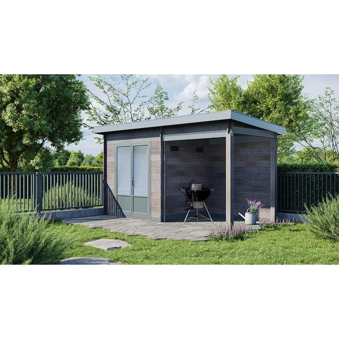 Ihr Vorteil: Ein überdachter Anbau mit Rückwand ist im Preis gleichermaßen enthalten. Unter dem Seitendach ist genügend Platz, um Ihr privates Outdoor-Esszimmer oder eine gemütliche Sitzecke einzurichten. Der Anbau lässt sich übrigens links oder rechts montieren – das entscheiden Sie einfach selbst.